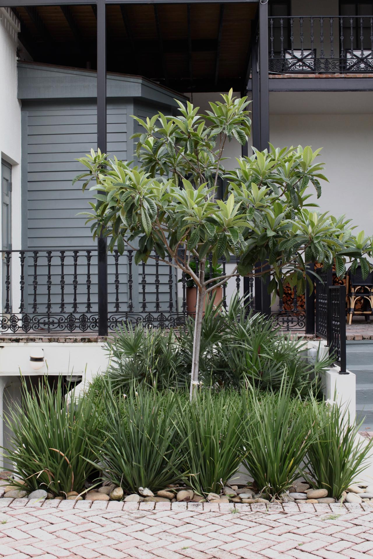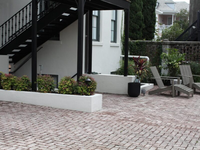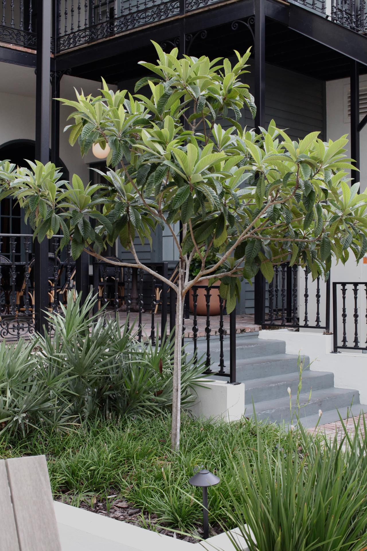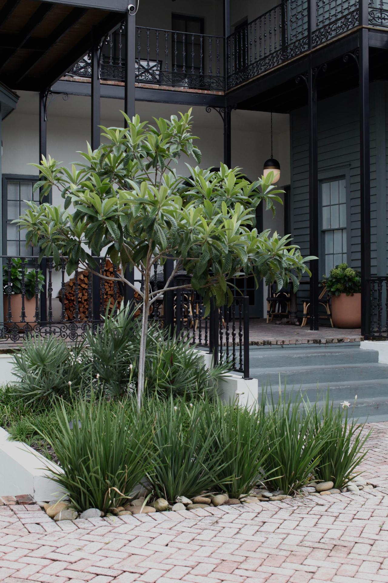 The beautiful design by Paul Daniels and the vision of this hospitality group guided the installation of a large courtyard surrounded by evergreen interest that their guests can enjoy during their stay in downtown Savannah.