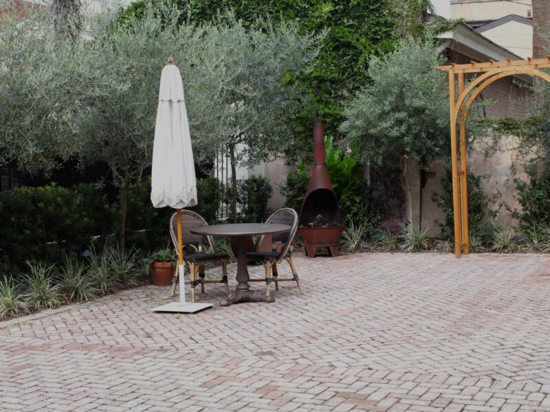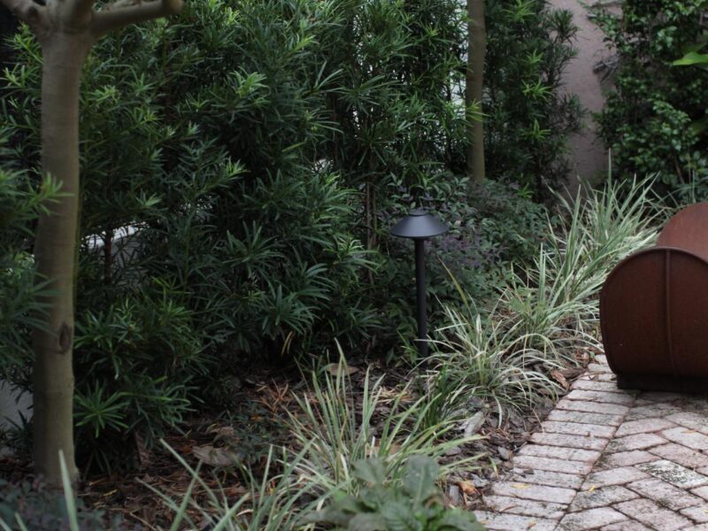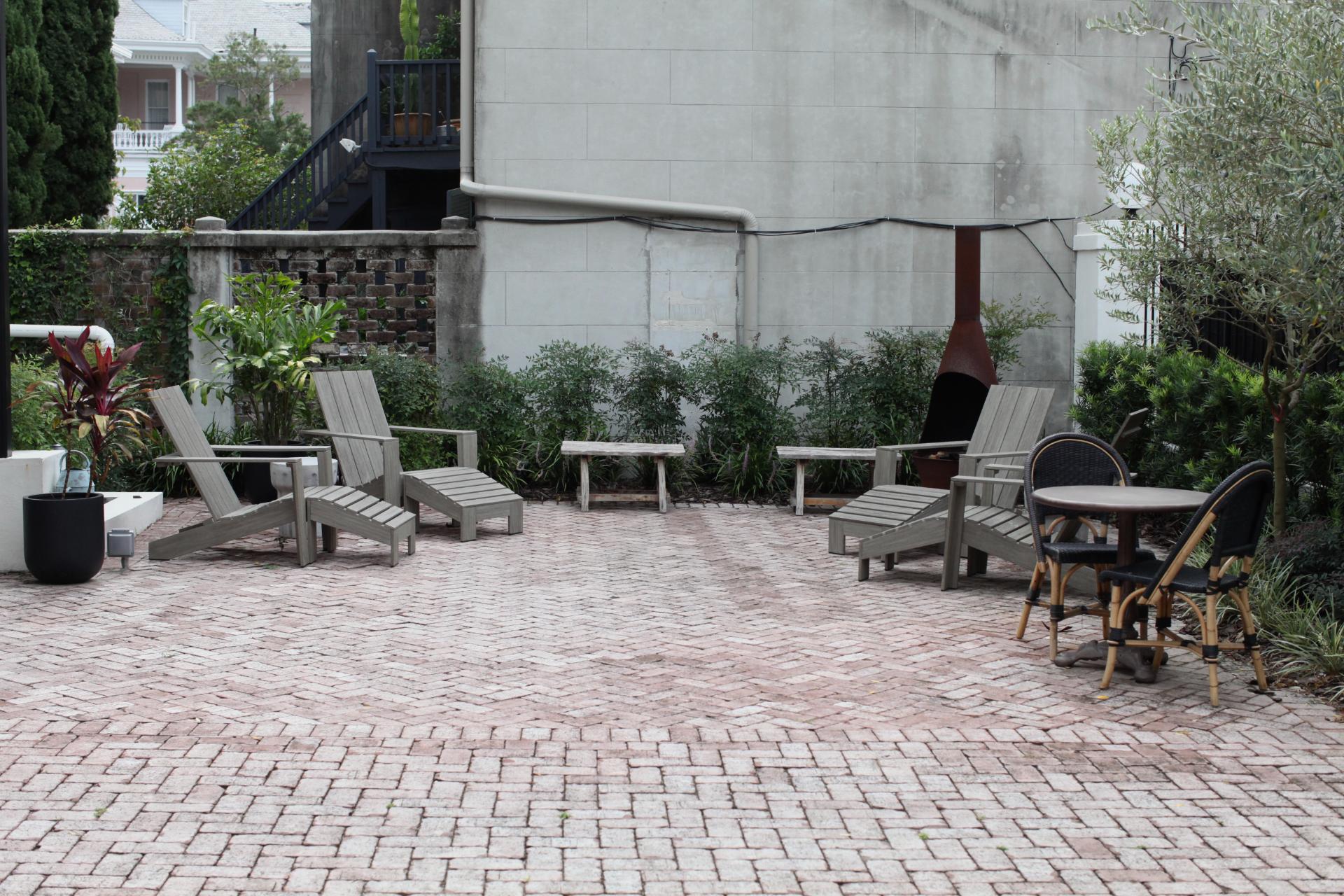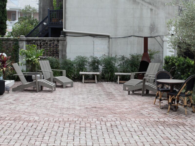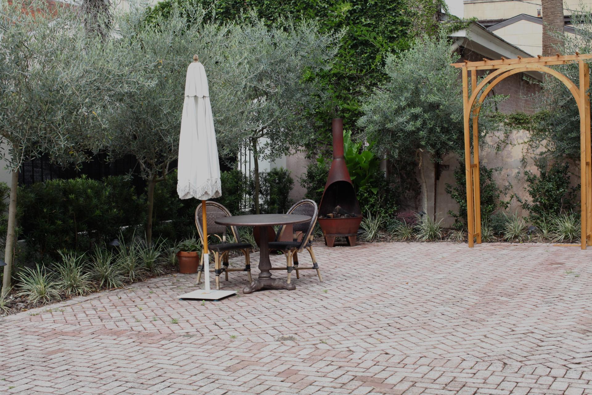 The beautiful design by Paul Daniels and the vision of this hospitality group guided the installation of a large courtyard surrounded by evergreen interest that their guests can enjoy during their stay in downtown Savannah.